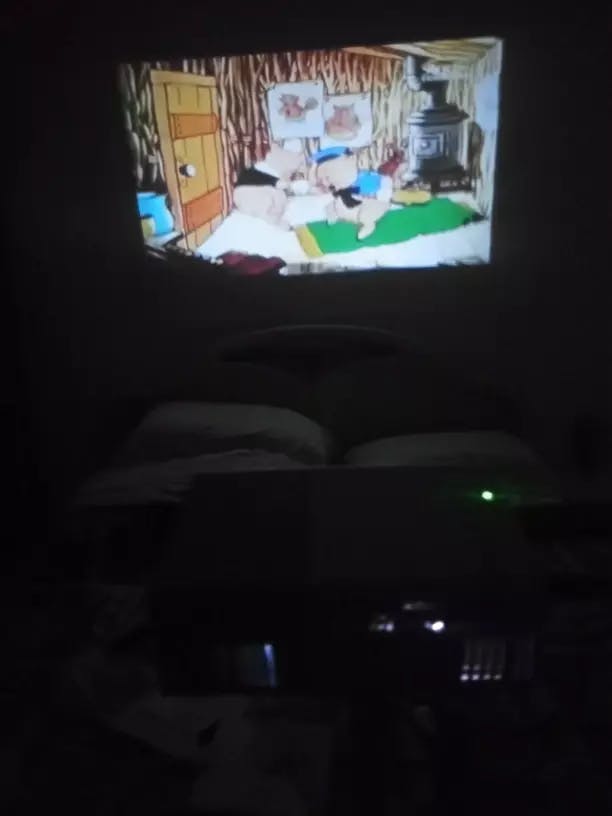 Very cute and very compact. It is true what they say, yes, you see the pixels, but for 20 euros you cannot expect more .. For good vision, I recommend total darkness, white wall place the projector at a maximum distance of 2 meters, preferably 1.50 M. This way the vision will be sufficiently pleasant. Bass audio.